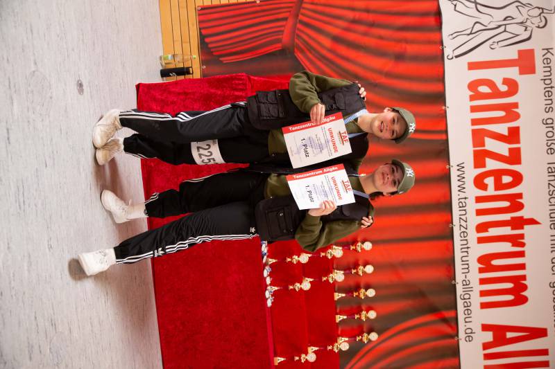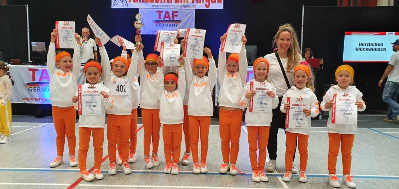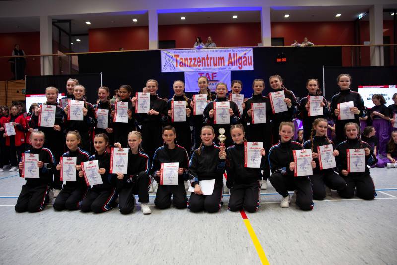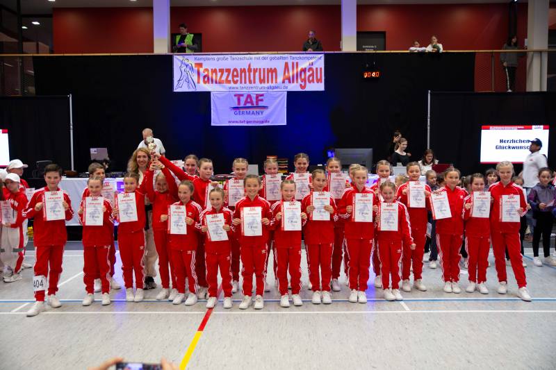 Wie schon bei der TAF Deutschen Meisterschaft im vergangenen Jahr gewannen die Formationen generat1onE (Mini Kids bis 7 Jahre), CamboKidz (Kinder 8-12 Jahre) und Q-ONE (Junioren 13-16 Jahre) des Tanzzentrum Allgäu wieder alle Nachwuchsklassen bei den HipHop-Formationen.